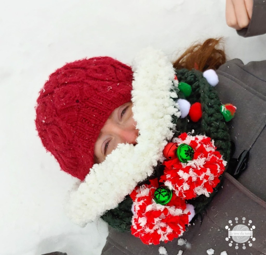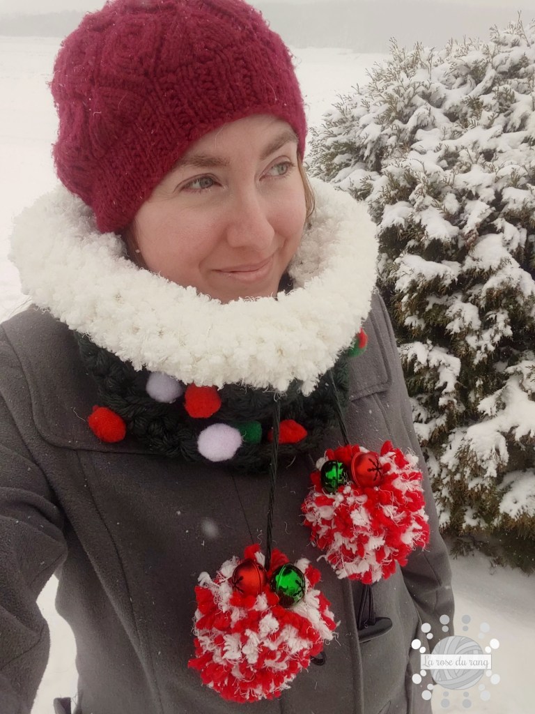 Pour l’épisode de Noël de La rose de laine, j’avais eu la brillante idée de suggérer qu’on se lance un défi dans le thème du « ugly Christmas sweater » (chandail moche de Noël) en utilisant des fournitures douteuses de Dollarama.