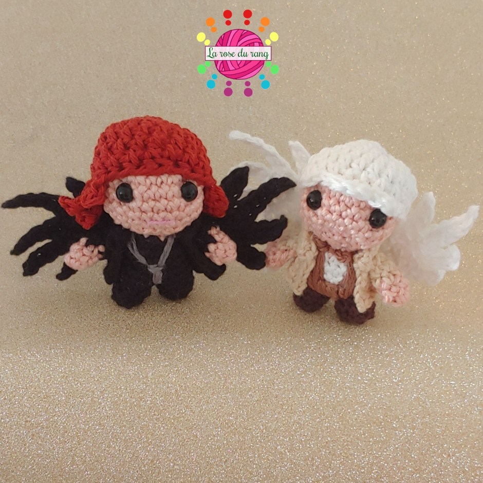 Bien entendu, je ne pouvais pas seulement faire l’ange du duo exquis de Good Omens! Crowley était un peu plus difficile à faire… En plus d’avoir beaucoup de difficulté à trouver la bonne couleur pour ses cheveux de feu! Au final je me suis rabattue sur un orange brûlé pour éviter qu’il ait l’air d’un cousin Weasley.
