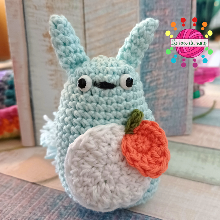 If you’ve been following this blog, you can probably recognize that I used my pocket bunny pattern and simply played with the colors to create this adorable Totoro.