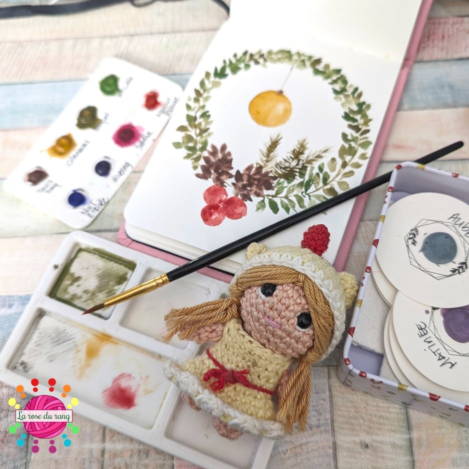 Ça commence à faire un moment que je me concentre sur les petits amigurumi, que j’aime faire des petites choses qui se tiennent au creux de la main et qui réchauffe un petit peu nos petits coeurs… c’est aussi pour ça que j’aime ma mini palette de Pixö aquarelle-watercolor, mon petit carnet de dessins, mes petits pinceaux et faire des petites aquarelles
