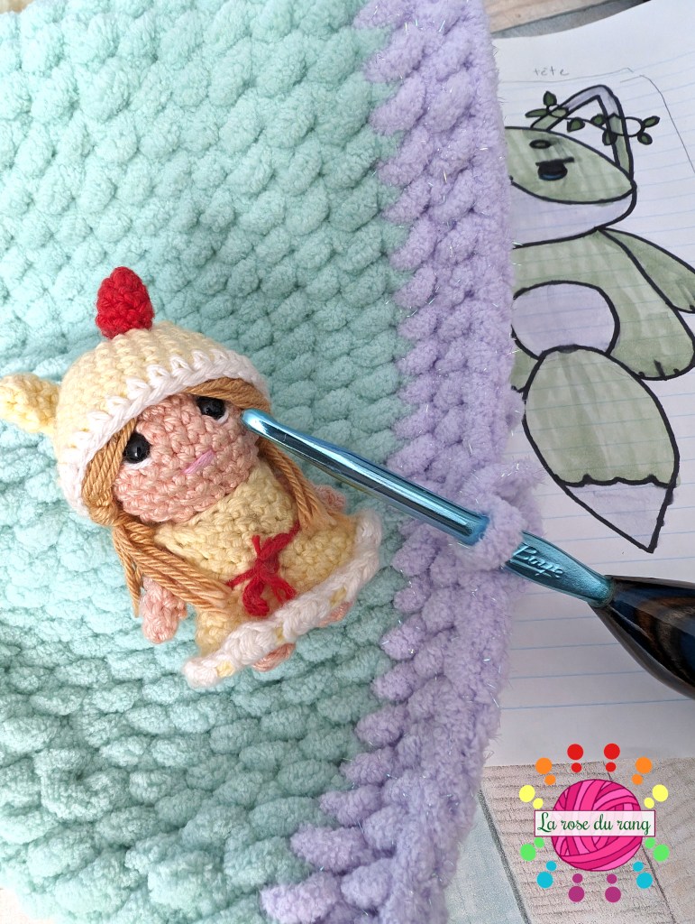 C’est une astuce que j’avais déjà vu ailleurs sur les réseaux sociaux, loin de moi l’idée de me vanter de révolutionner le monde du crochet, mais vu l’échelle à laquelle je travaille habituellement je n’avais jamais eu besoin de l’appliquer avant. Mais comme vous pouvez le constater, je suis loin de mon échelle habituelle!
