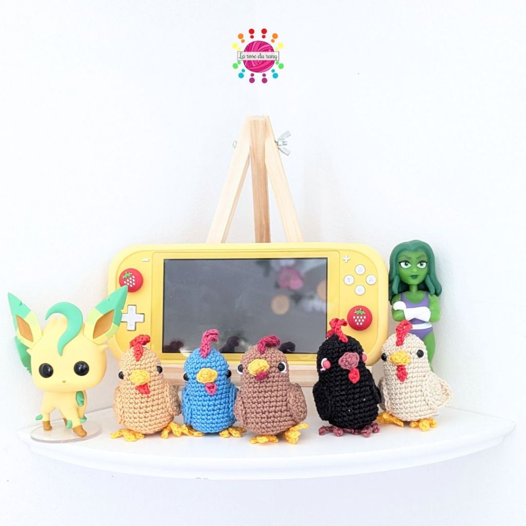 When I showed her, my friend Cristal (Fil de Cristal), told me I should also make her the black chicken… and the golden one… and my daughter now has a collection of chicken proudly displayed with her Switch console. Which is very ironic given that the Switch is the only plateform where we do not have a copy of the game lol!