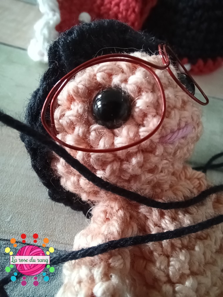 Et encore une fois j’ai eu la chance de pratiquer mes talents de plieuse de fil de fer (sculpteuse de fil de fer?) pour faire d’adorable lunette à mini Annick!