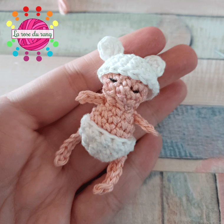 Finalement c’était un bien moins grand défi que je pensais que de lui faire des petits membres ainsi qu’une petite couche et un petit chapeau!