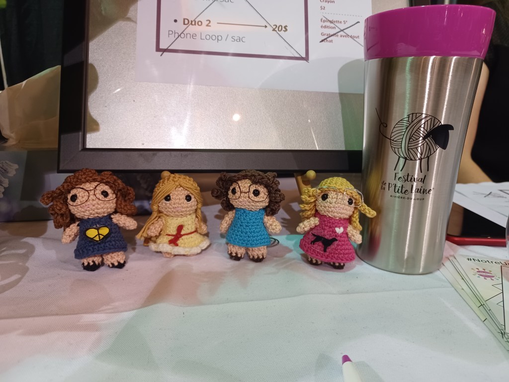 Les 1 et 2 octobre 2022 c’était la 6e édition du Festival de la P’tite laine à Rivière-du-Loup, j’ai eu la chance d’y rencontrer, directement ou via la visite traditionnelle de mini Karine, une multitude d’exposants de grand talent! Geneviève Dubuc-Kean alias Geny Kean n’a pas pu résister à l’envie de participer à Notre Univers au crochet!