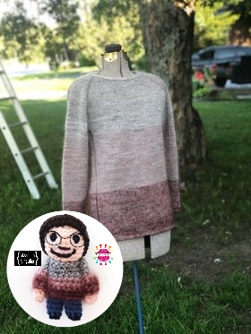Une nouvelle entrée #NotreUniversauCrochet et cette fois-ci c’est Philippe Boulianne de Masculin Singulier qui s’est prêté au jeu en me demandant un mini Philippe et une mini Sandra Lee qui l’accompagne en exposition!